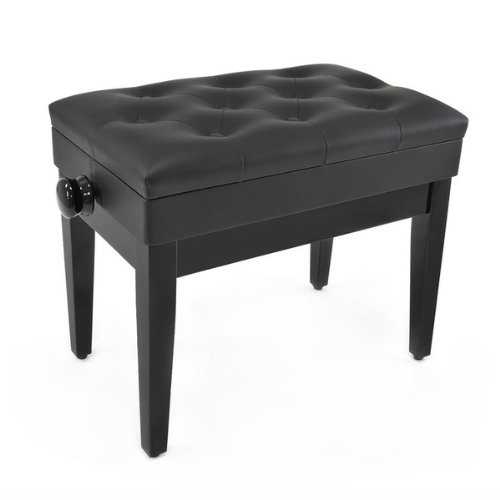 Banc de piano de luxe à hauteur réglable avec un espace de rangement rangement situé sous le siège.