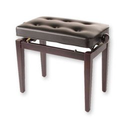 'BANQUETTE PIANO, ROSEWOOD','- Banquette piano ''Chesterfield''','- Hauteur réglable: 47 à 55 cm Dim.siÚge: (56 x 33 cm) Poids: 7,6 Kg',- palissandre foncé mat/ skai noir. ...