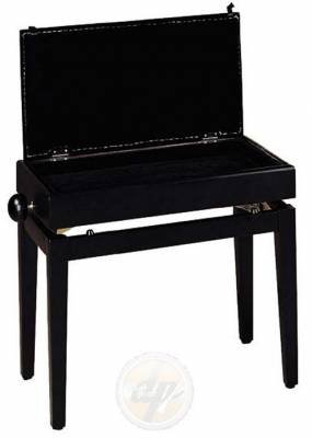 Banquette piano avec porte-partition Caractéristiques techniques : - Hauteur réglable ( H : 51 à 60 cm) - Dim.siège : (55 x 32)cm - Recouvrement :(52 x 29)cm - Poids : 8,8 Kg - noir verni / velours noir.